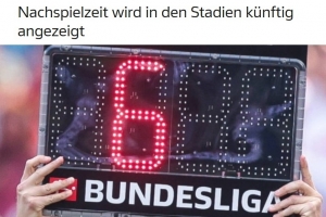若技术条件允许,屏幕还将同步展示裁判指定的补时总时长。此举旨在提升观众、球员及媒体的观赛体验,已获得德国足协裁判委员会支持。
